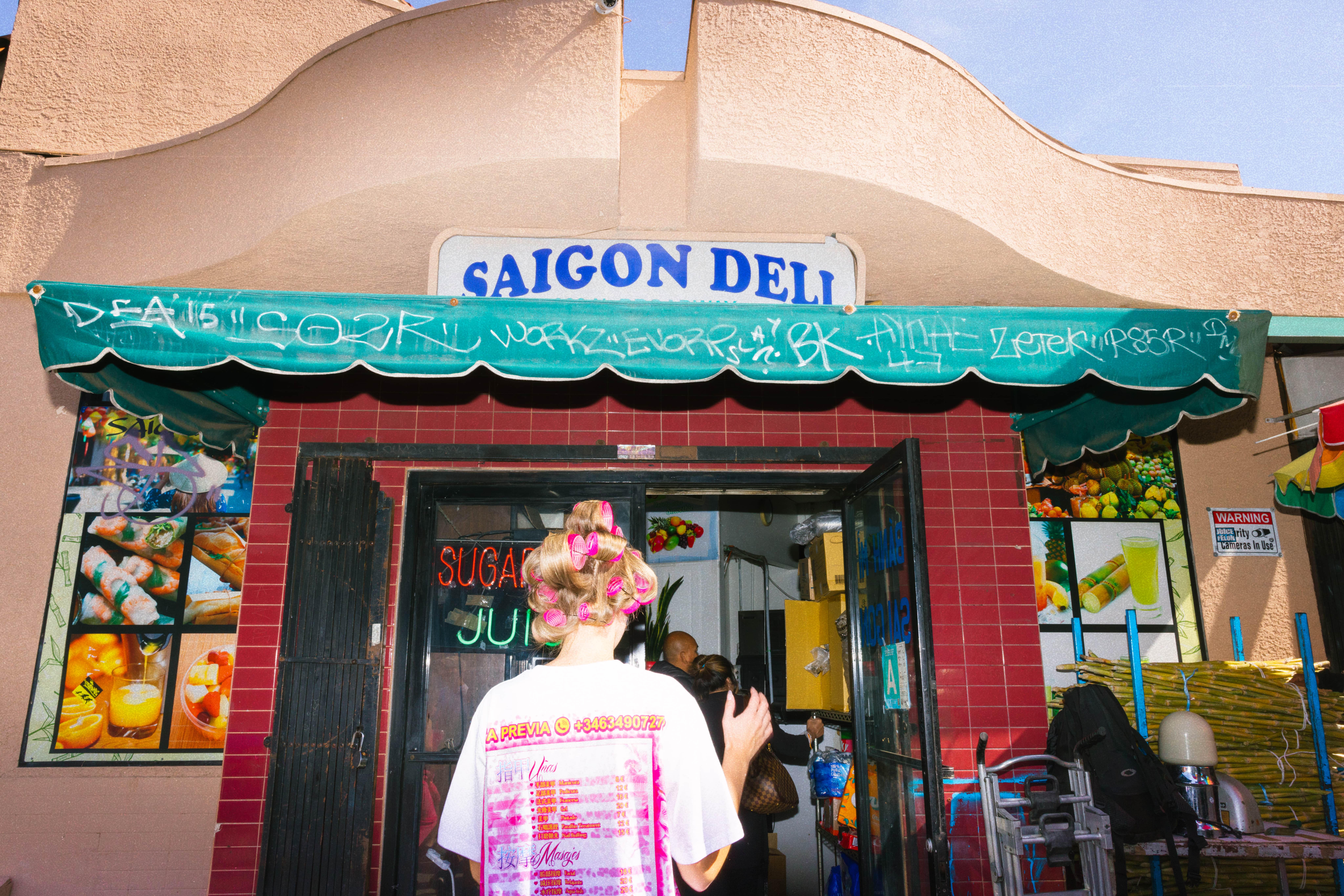 The Ssstufff Supermarket® campaign draws inspiration from Hanks Willis Thomas' 1980 artwork 'Look Normal'. The campaign features a series of photos taken by Polina Lynn in collaboration with the clothing brand Ssstuff Supermarket, set in Chinatown, Los Angeles.